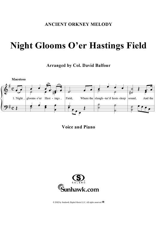 Digital Sheet Music for Night Glooms O'er Hastings Field by Col. David Balfour scored for Voice/Piano; id:275892