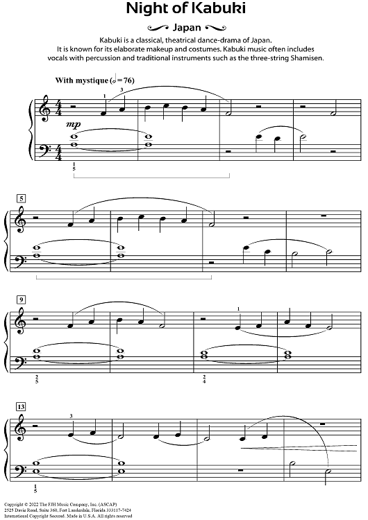 Digital Sheet Music for Night of Kabuki (Japan) by Wynn-Anne Rossi scored for Piano Solo; id:500508