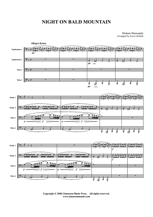 Digital Sheet Music for Night on Bald Mountain - Score by Larry Zaidan, Modest Mussorgsky scored for Tuba Quartet; id:416039
