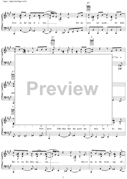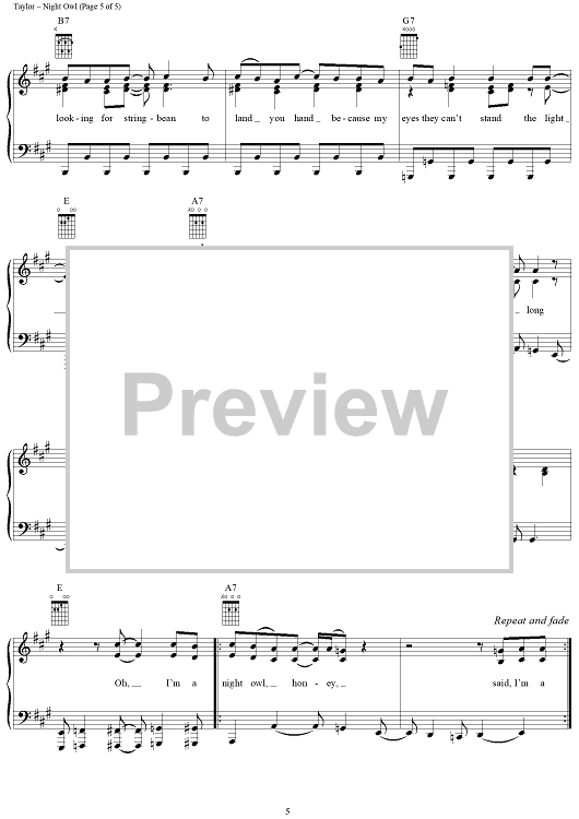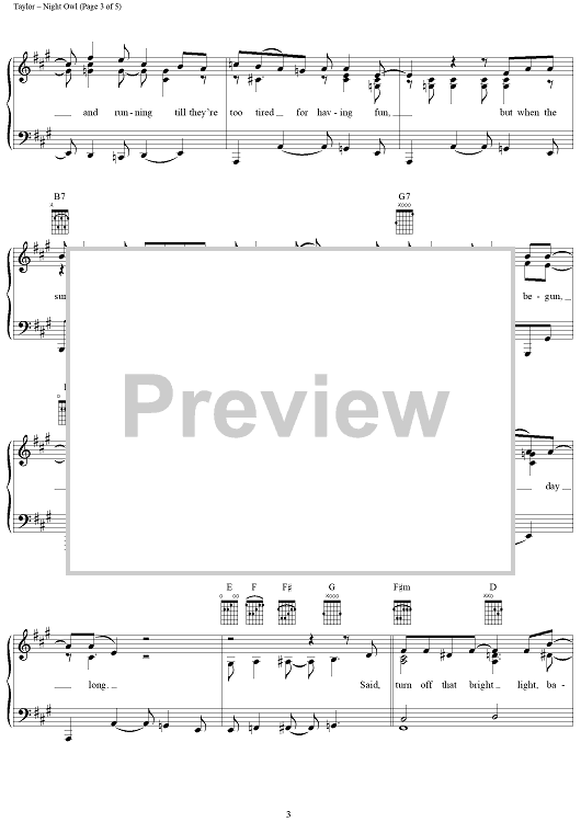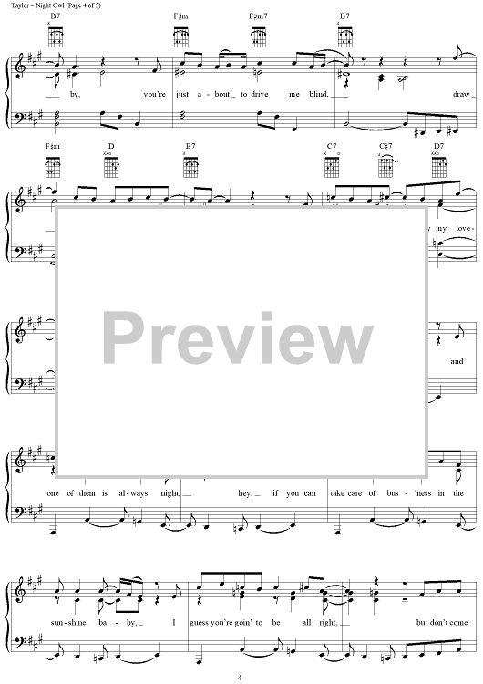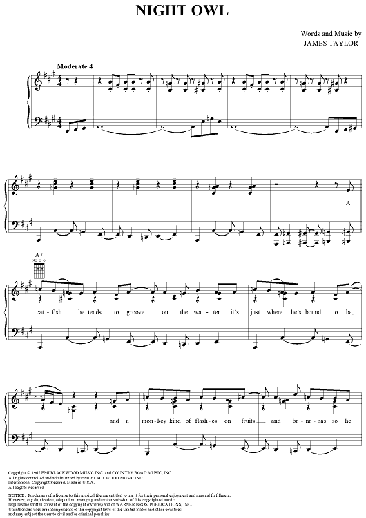 Digital Sheet Music for Night Owl by James Taylor scored for Piano/Vocal/Chords; id:318750