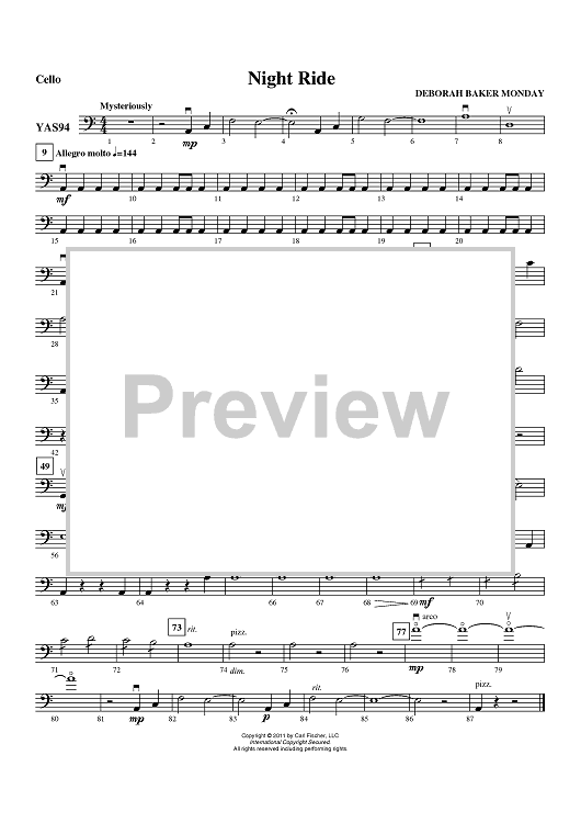 "Night Ride - Cello" Sheet Music by Deborah Baker Monday