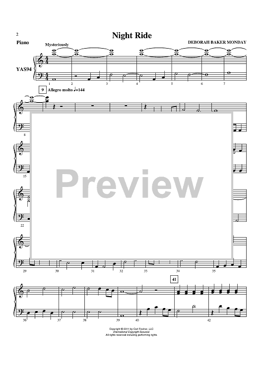 "Night Ride - Piano" Sheet Music by Deborah Baker Monday