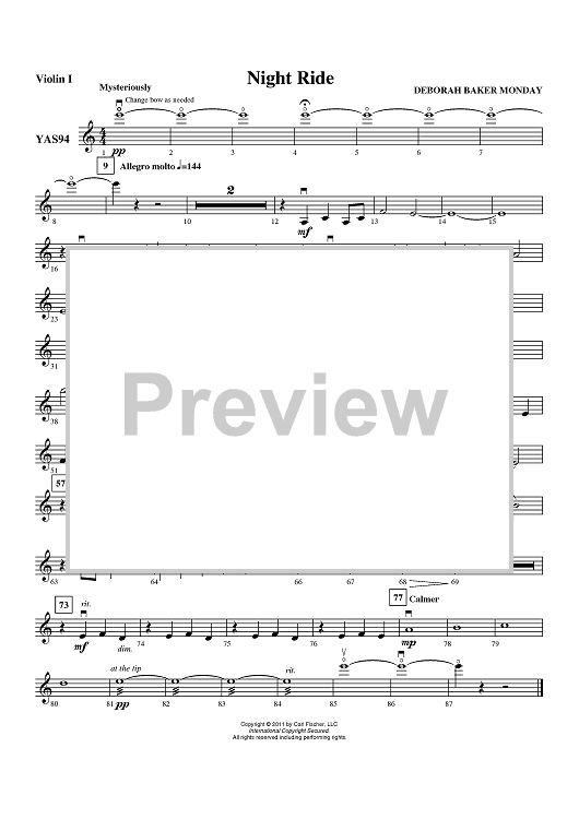 "Night Ride - Violin 1" Sheet Music by Deborah Baker Monday