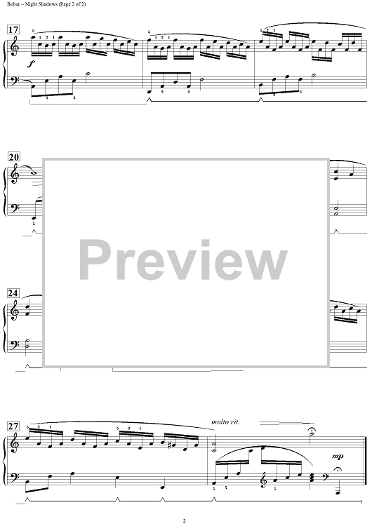 Digital Sheet Music for Night Shadows by Melody Bober scored for Piano; id:456499