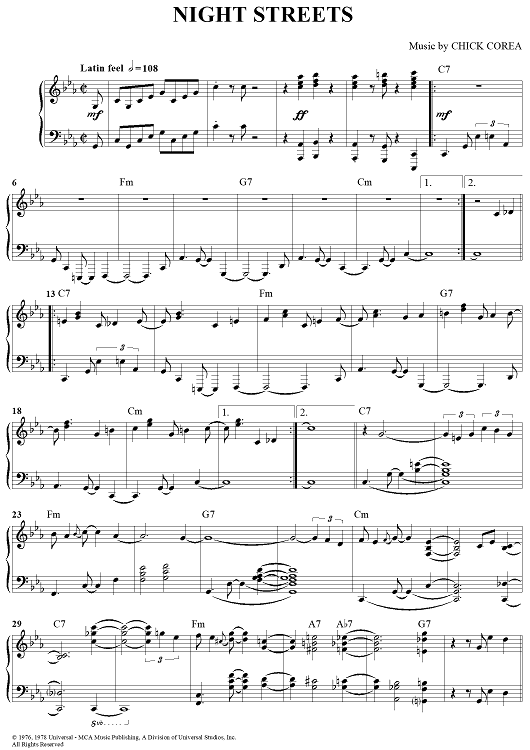 Digital Sheet Music for Night Streets by Chick Corea scored for Piano Solo; id:292152