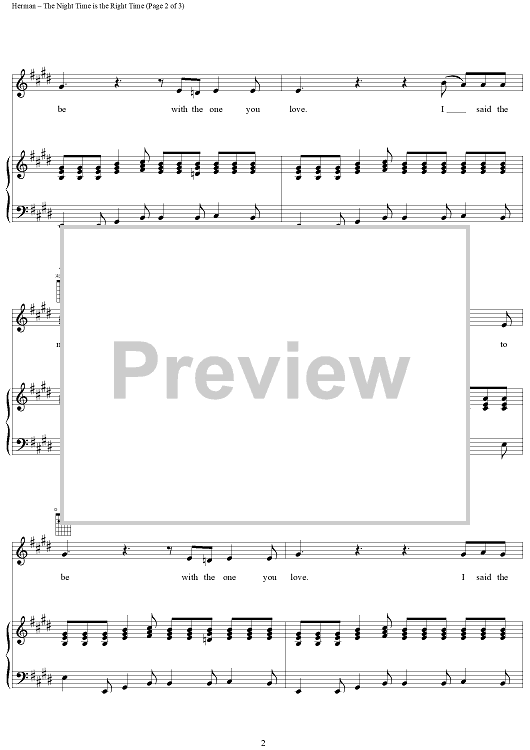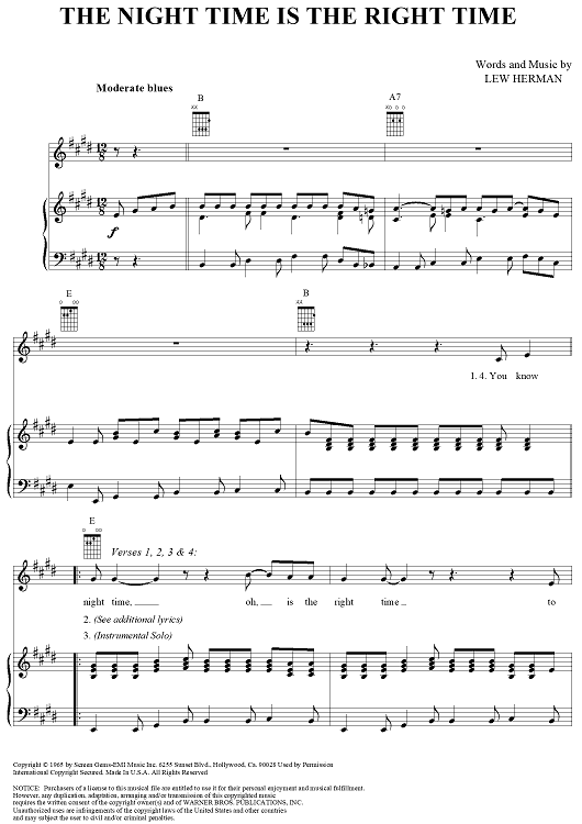 Digital Sheet Music for Night Time is the Right Time, The by Lew Herman, Creedence Clearwater Revival scored for Piano/Vocal/Chords; id:266976
