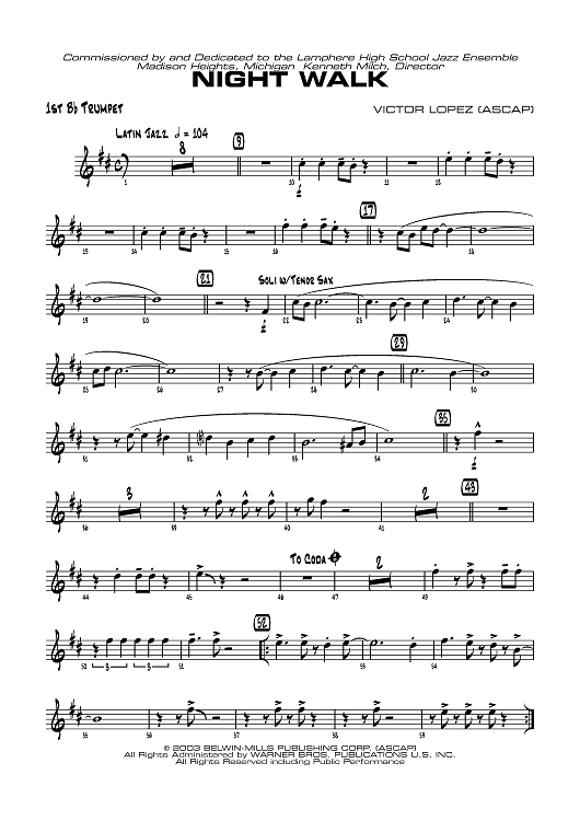 "Night Walk - B-flat Trumpet 1" Sheet Music by Victor Lopez