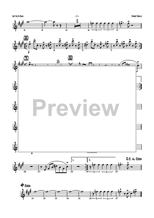 "Night Walk - E-flat Alto Saxophone 1" Sheet Music by Victor Lopez