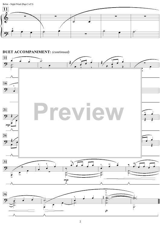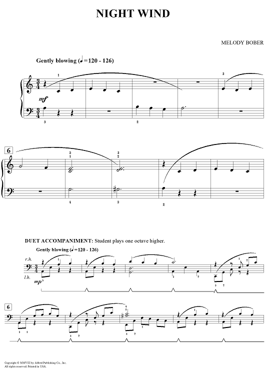 Digital Sheet Music for Night Wind by Melody Bober scored for Piano; id:456902