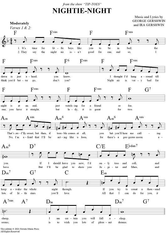 Digital Sheet Music for Nightie-Night by , George Gershwin, Ira Gershwin scored for Lead Sheet; id:283672