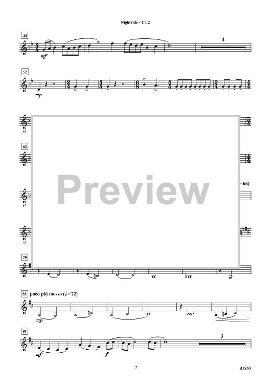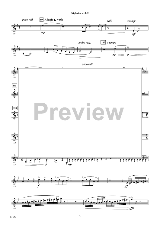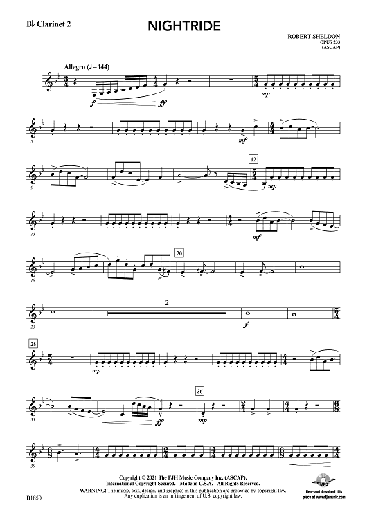 Digital Sheet Music for Nightride - Bb Clarinet 2 by Robert Sheldon scored for Concert Band; id:510550