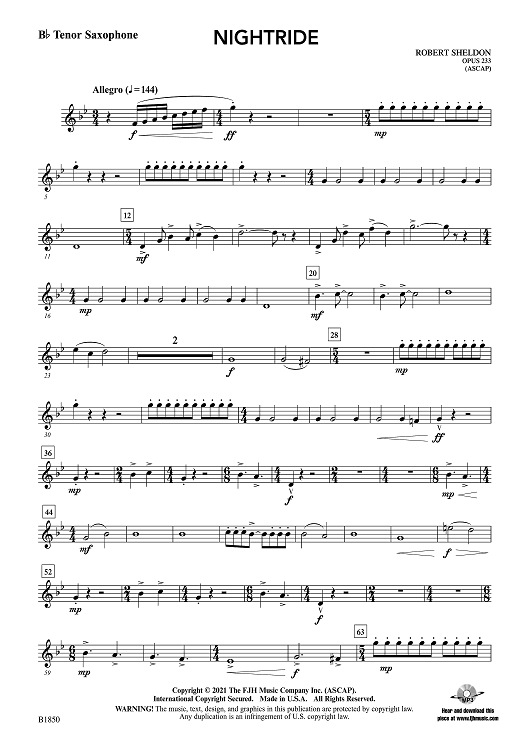 Digital Sheet Music for Nightride - Bb Tenor Saxophone by Robert Sheldon scored for Concert Band; id:510555