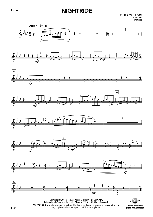 "Nightride - Oboe" Sheet Music by Robert Sheldon