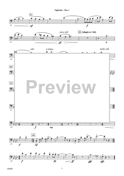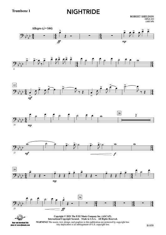 Digital Sheet Music for Nightride - Trombone 1 by Robert Sheldon scored for Concert Band; id:510562