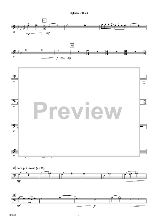 Digital Sheet Music for Nightride - Trombone 2 by Robert Sheldon scored for Concert Band; id:510563