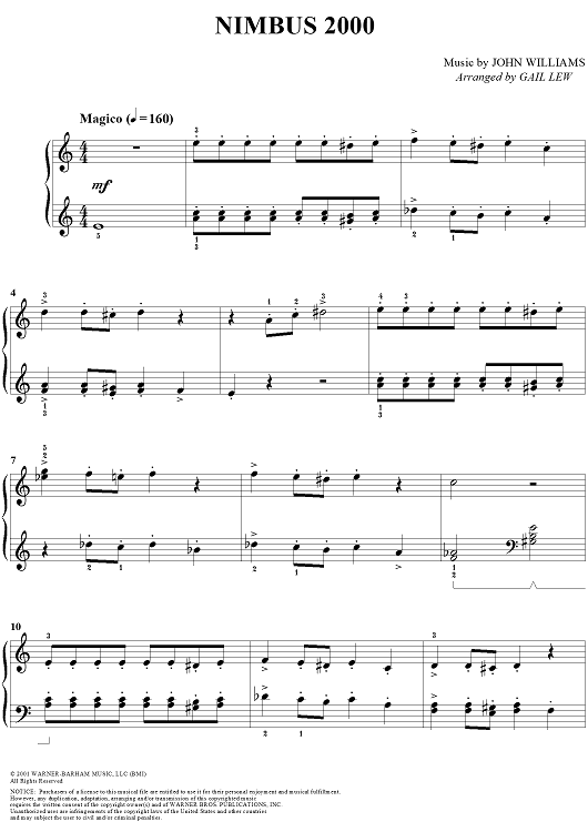 Digital Sheet Music for Nimbus 2000 by John Williams, Gail Lew scored for Easy Piano; id:284265