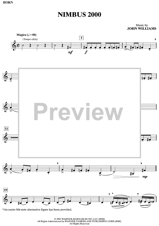 Digital Sheet Music for Nimbus 2000 by John Williams scored for Horn/Piano; id:498140
