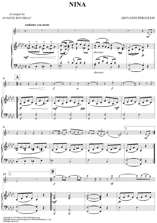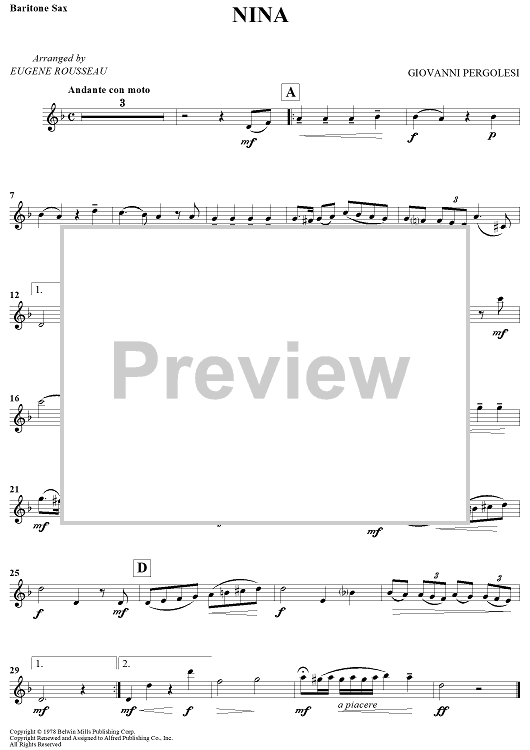 Digital Sheet Music for Nina by Giovanni Battista Pergolesi, Eugene Rousseau scored for Eb Baritone Sax/Piano; id:439553