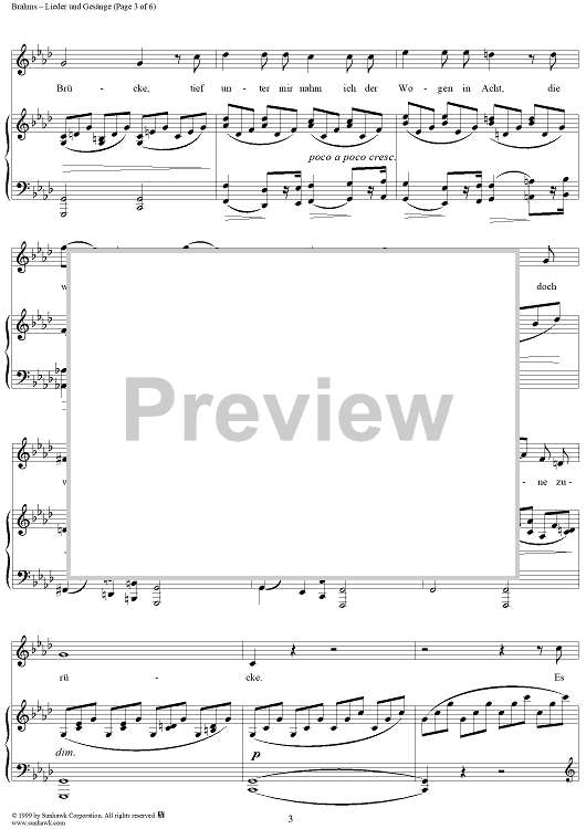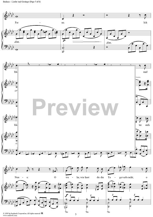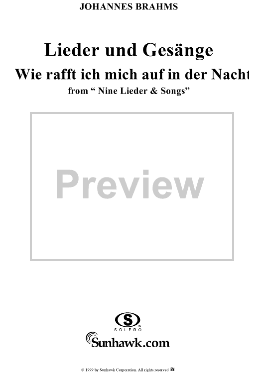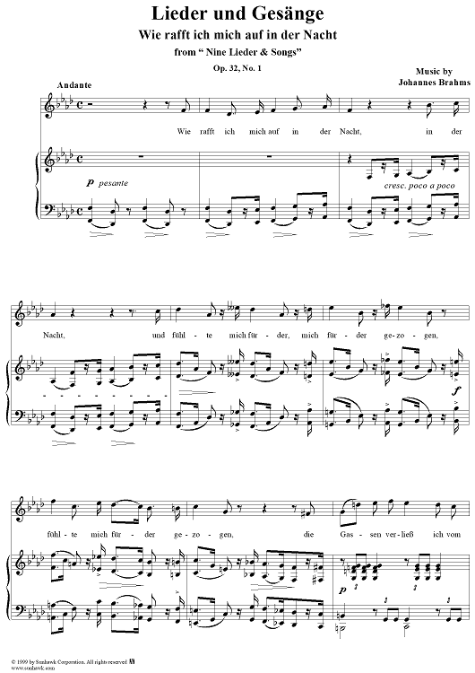 Digital Sheet Music for Nine Lieder & Songs, Op.32, No.1 "Wie rafft ich mich auf in der Nacht" by Johannes Brahms scored for Voice/Piano; id:274090