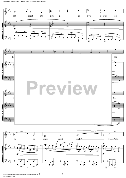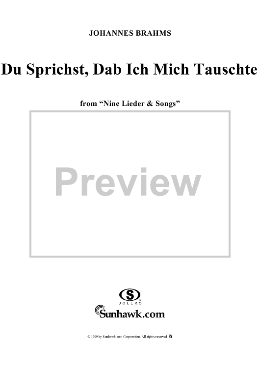 Digital Sheet Music for Nine Lieder & Songs, Op.32, No.6 "Du sprichst, dab ich mich täuschte" by Johannes Brahms scored for Voice/Piano; id:274097