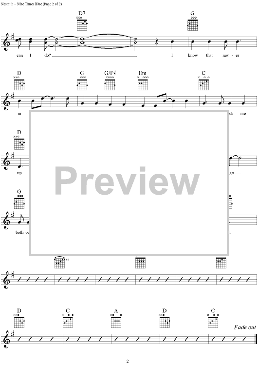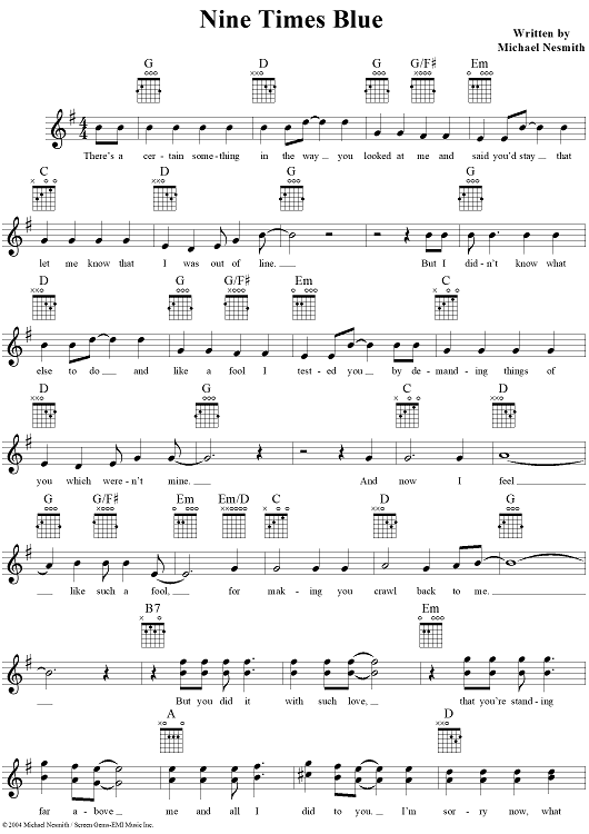 "Nine Times Blue" Sheet Music by Michael Nesmith