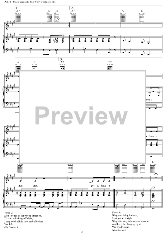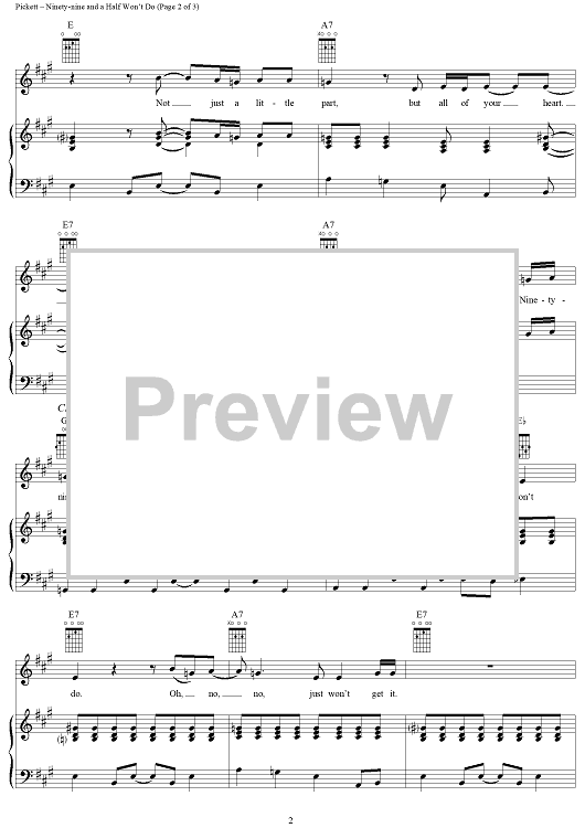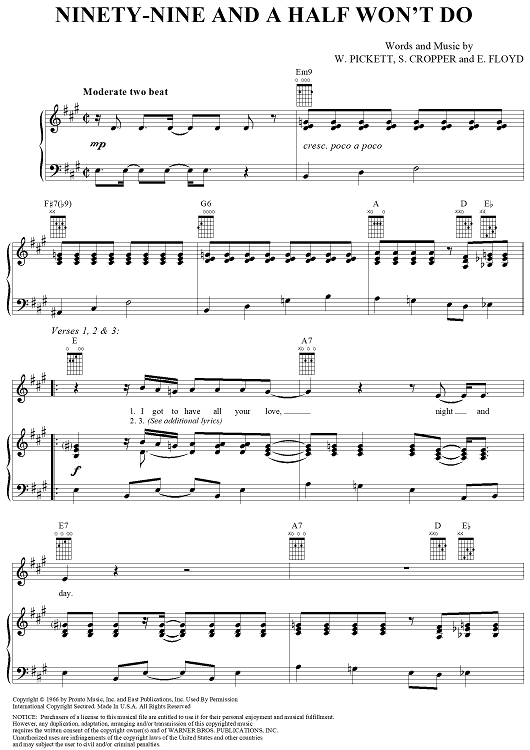 Digital Sheet Music for Ninety-nine and a Half Won't Do by Steve Cropper, Wilson Pickett, Eddie Floyd, Creedence Clearwater Revival scored for Piano/Vocal/Chords; id:254536