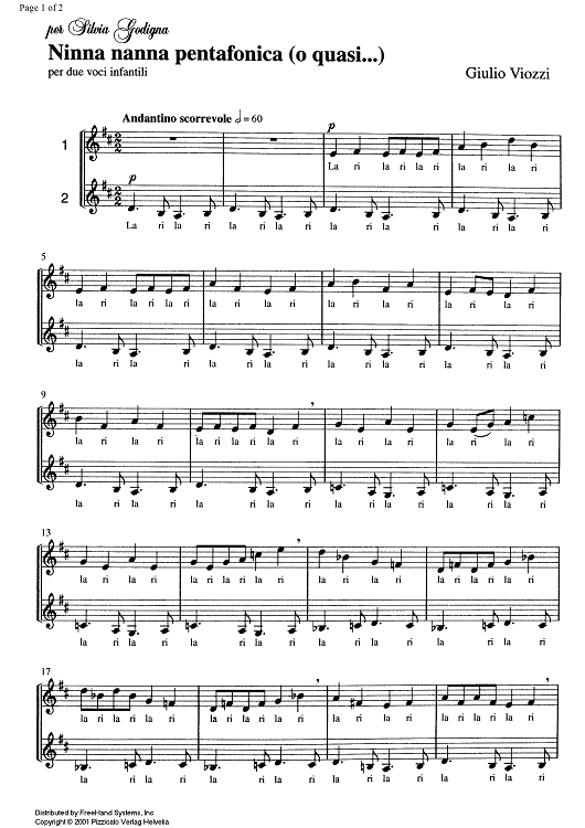 "Ninna nanna pentafonica" Sheet Music by Giulio Viozzi