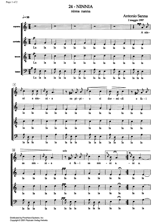Digital Sheet Music for Ninnia - Score by , Antonio Sanna scored for SATB Choir; id:345228