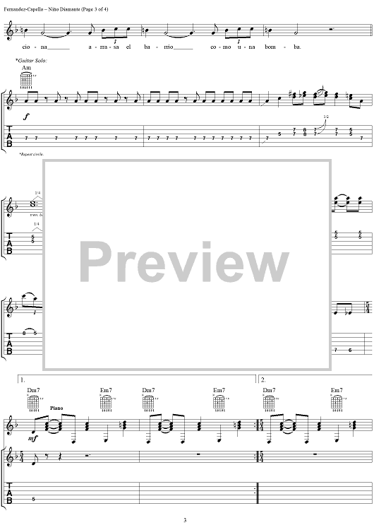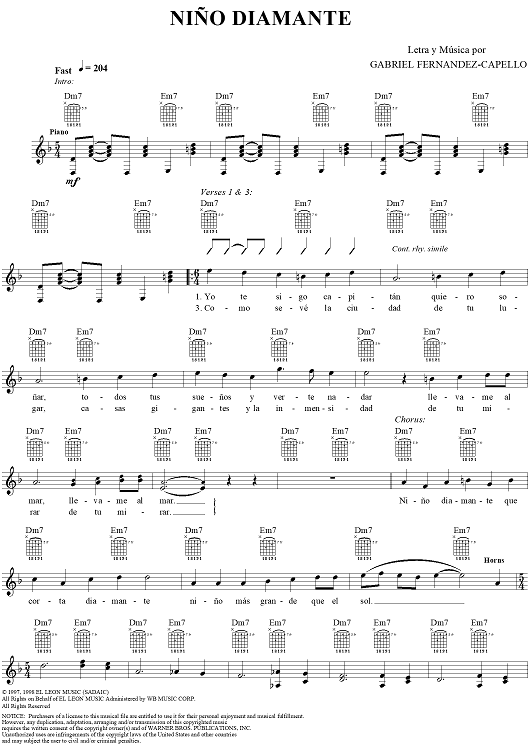 "Niño Diamante" Sheet Music by Los Fabulosos Cadillacs