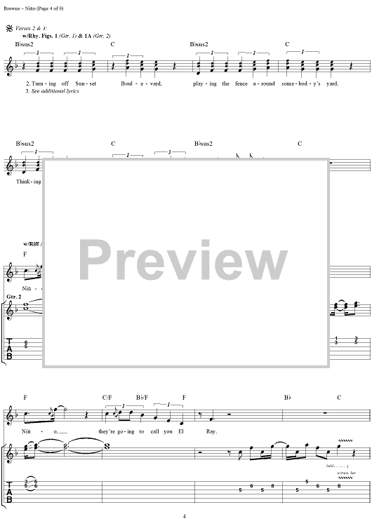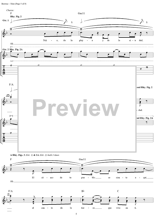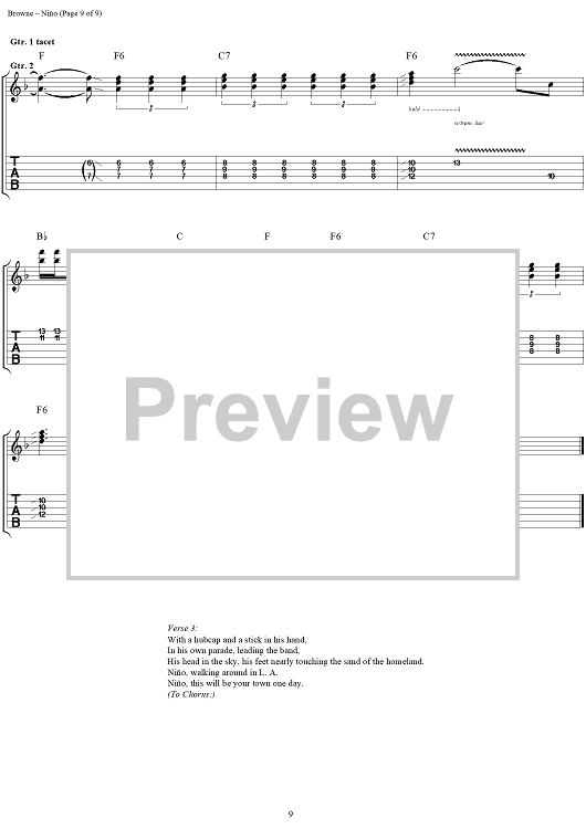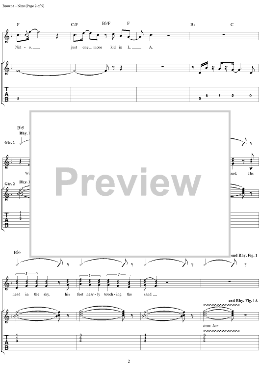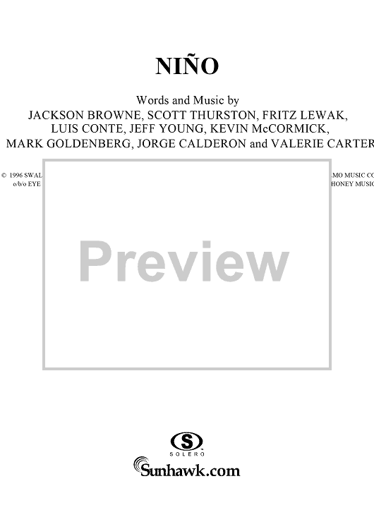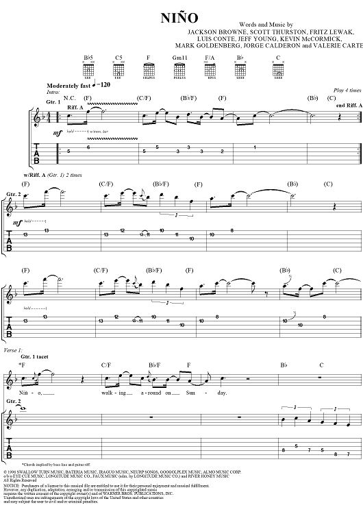 Digital Sheet Music for Niño by Jackson Browne, Kevin McCormick, Mauricio "Fritz" Lewak, Scott Thurston, Luis Conte, Jeff Young, Mark Goldenberg, Jorge Calderon, Valerie Carter scored for Guitar Tab/Vocal; id:113985