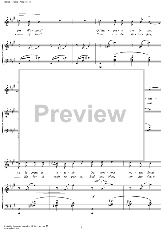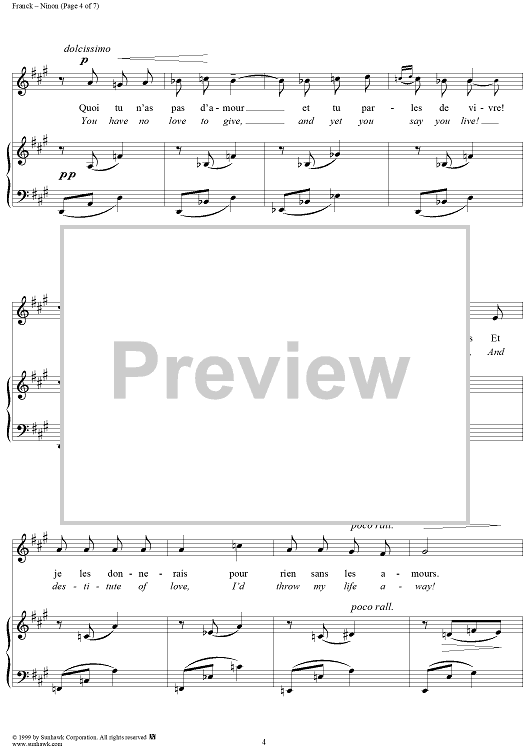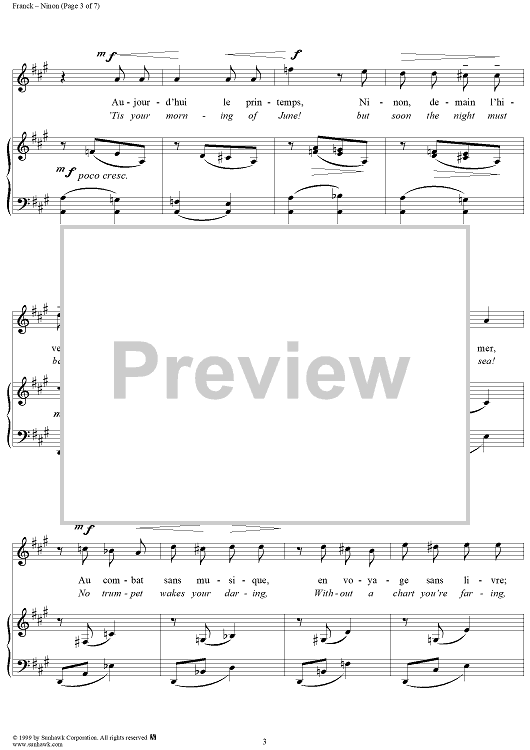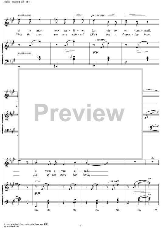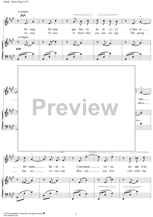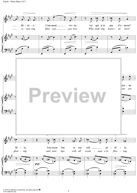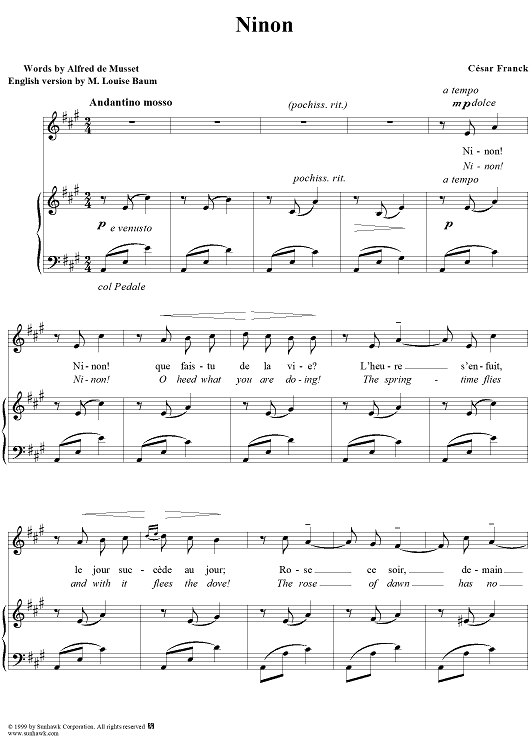 Digital Sheet Music for Ninon by César Franck, Alfred de Musset scored for Voice/Piano; id:118199