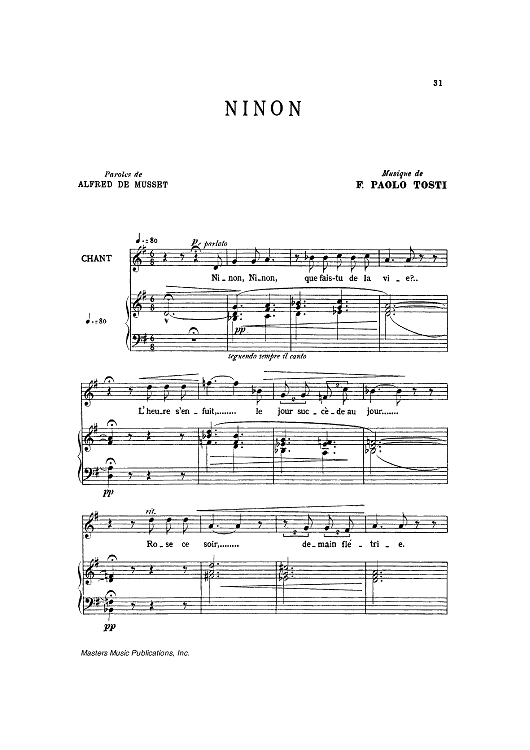 Digital Sheet Music for Ninon by Alfred de Musset, Francesco Paolo Tosti scored for Piano/Vocal; id:444602