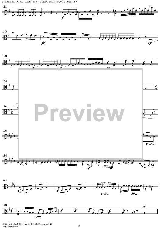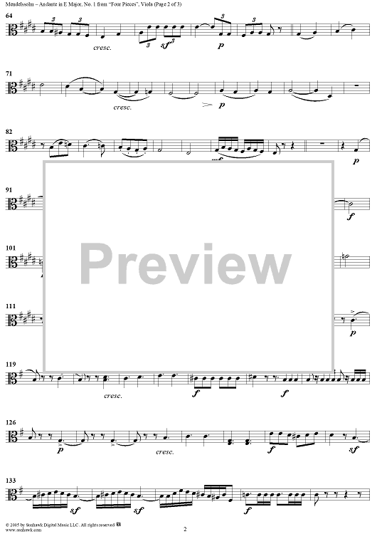 "No. 1: Andante - Viola" Sheet Music by Felix Mendelssohn