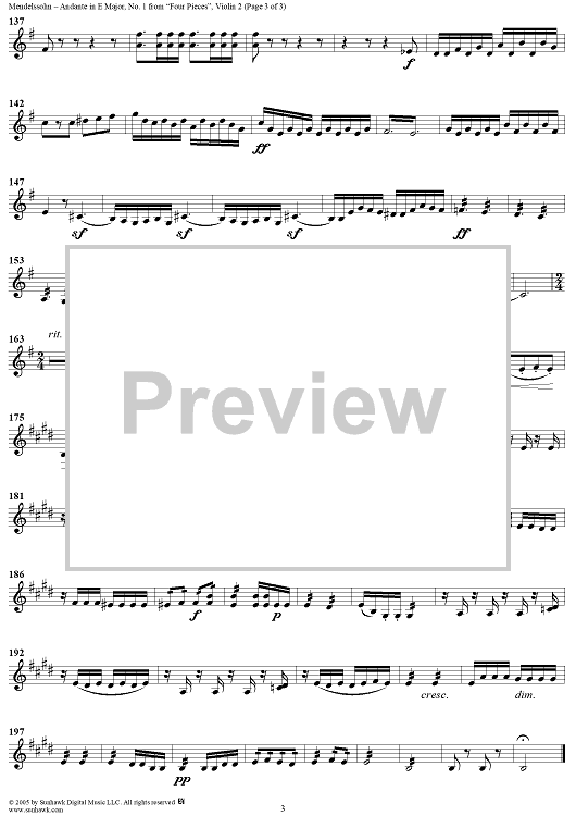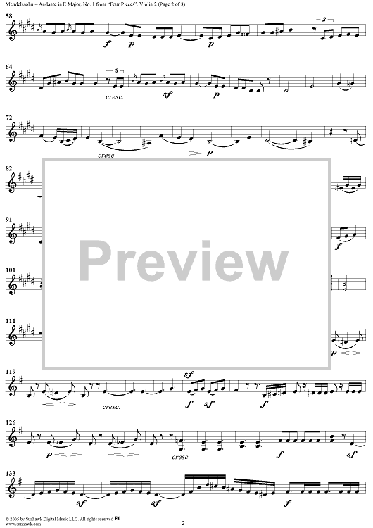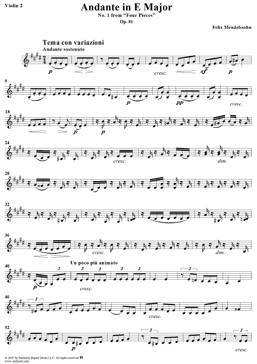 "No. 1: Andante - Violin 2" Sheet Music by Felix Mendelssohn