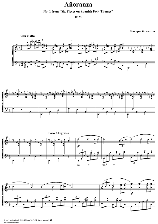Digital Sheet Music for No. 1: Añoranza by Enrique Granados scored for Piano Solo; id:267838
