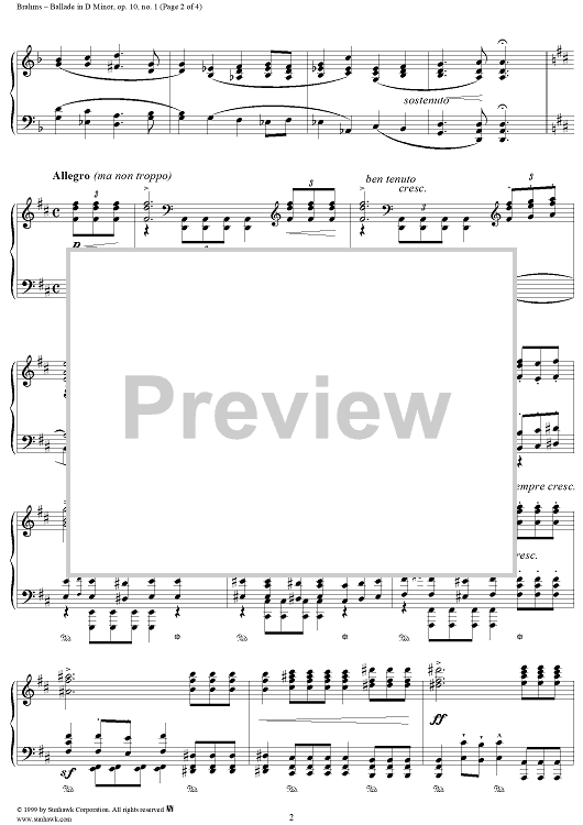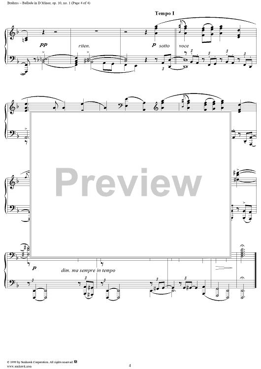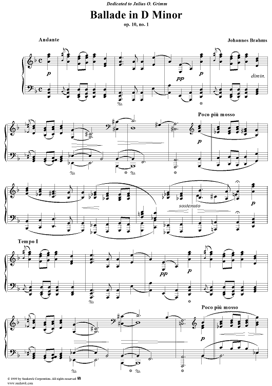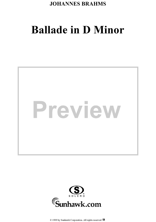 Digital Sheet Music for No. 1: Ballade in D Minor by , Johannes Brahms scored for Piano Solo; id:274650