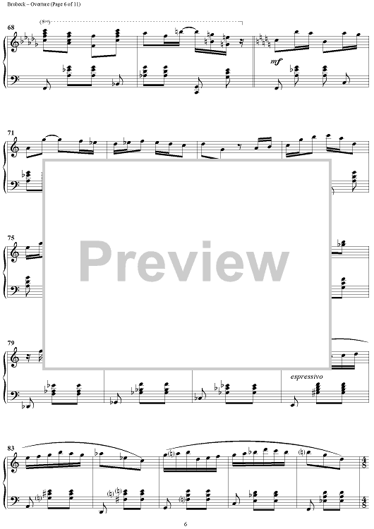 Digital Sheet Music for No. 1: Overture by Dave Brubeck scored for Piano Solo; id:295055