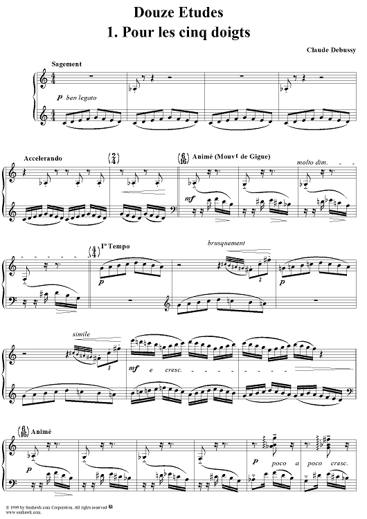 "No. 1: Pour les Cinq Doigts" Sheet Music by Claude Debussy