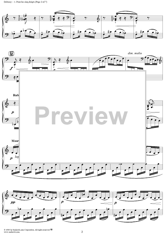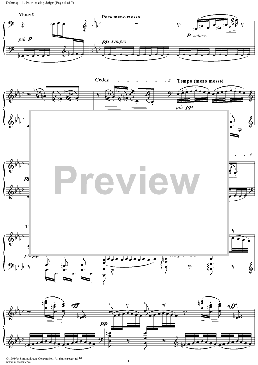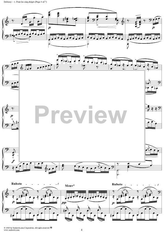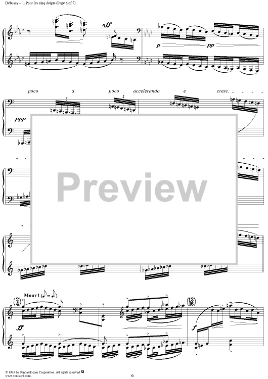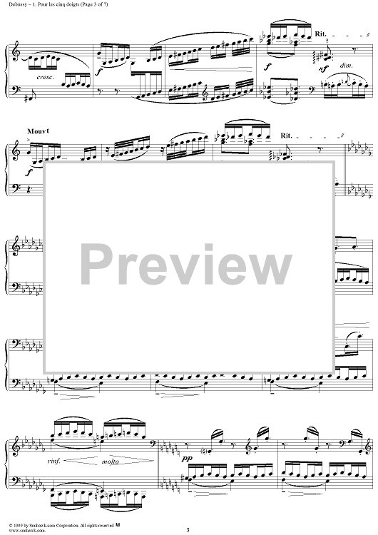 Digital Sheet Music for No. 1: Pour les Cinq Doigts by Claude Debussy scored for Piano Solo; id:186285