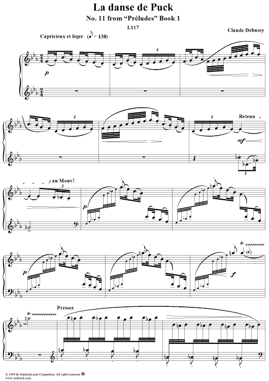 Digital Sheet Music for No. 11: La Danse de Puck by Claude Debussy scored for Piano Solo; id:119285