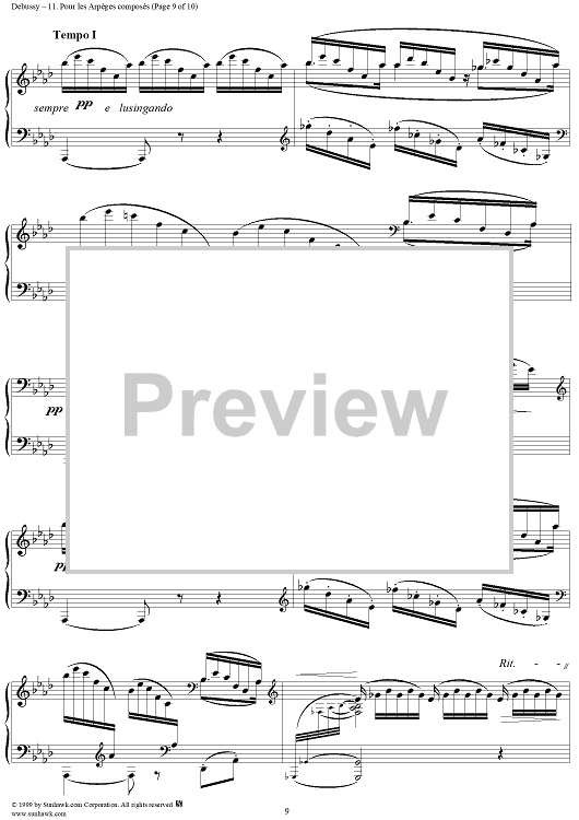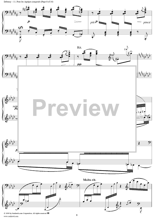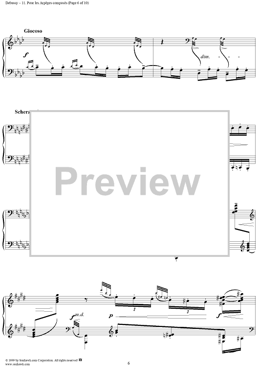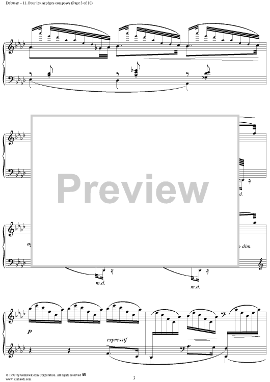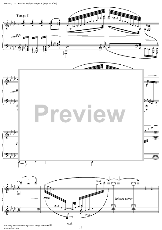Digital Sheet Music for No. 11: Pour les Arpèges composés by Claude Debussy scored for Piano Solo; id:272046