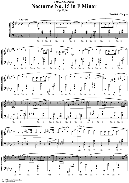 Digital Sheet Music for No. 15 in F Minor, Op. 55, No. 1 by Frederic Chopin scored for Piano Solo; id:95315