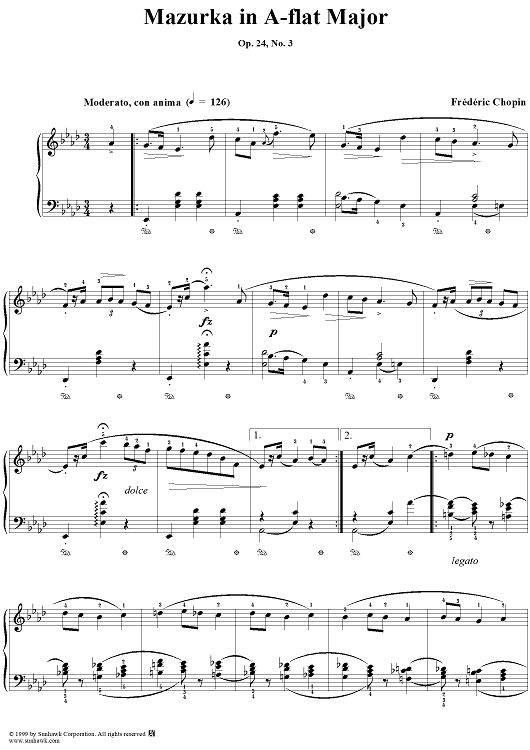 Digital Sheet Music for No. 16 in A-flat Major, Op. 24, No. 3 by Frederic Chopin scored for Piano Solo; id:118082