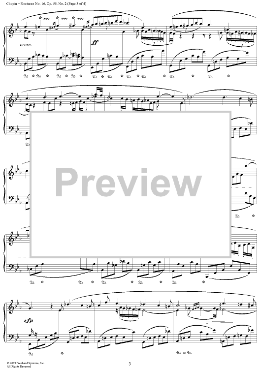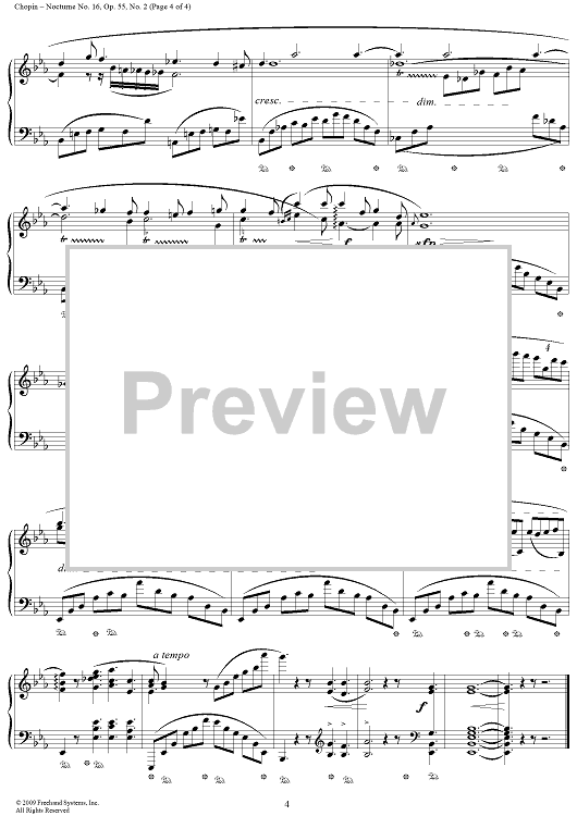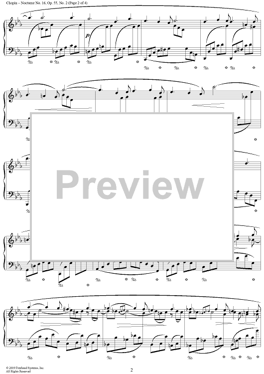 Digital Sheet Music for No. 16 in E-flat Major, Op. 55, No. 2 by Frederic Chopin scored for Piano Solo; id:95322