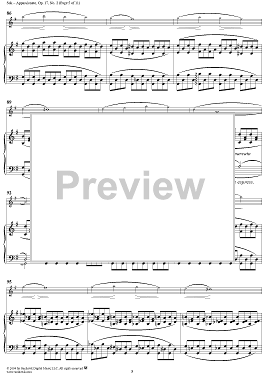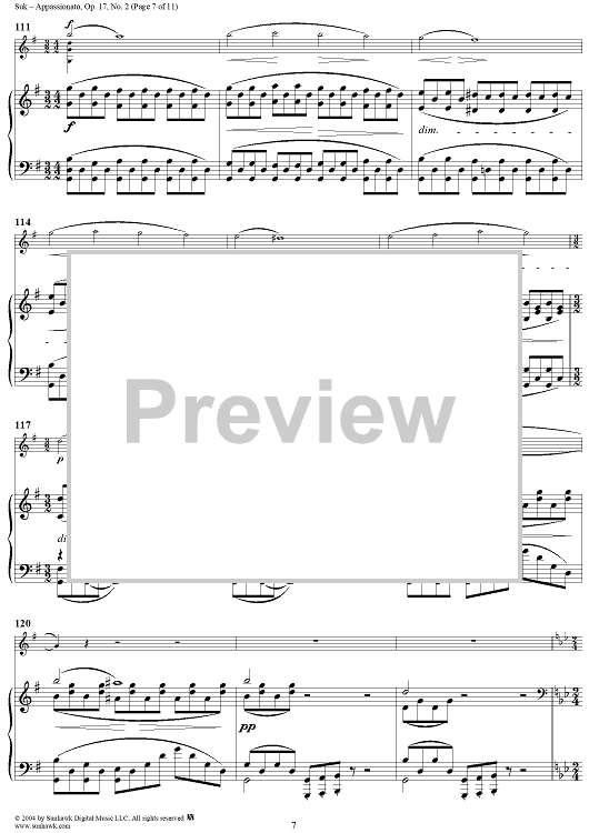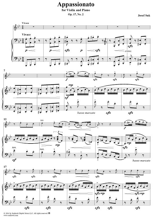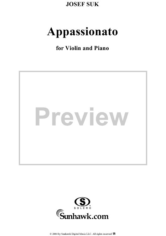 Digital Sheet Music for No. 2: Appassionato - Piano Score by Josef Suk scored for Violin/Piano; id:303304