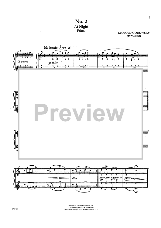 Digital Sheet Music for No. 2 At Night - from First Suite by Leopold Godowsky scored for 1 Piano, 4 Hands; id:439562