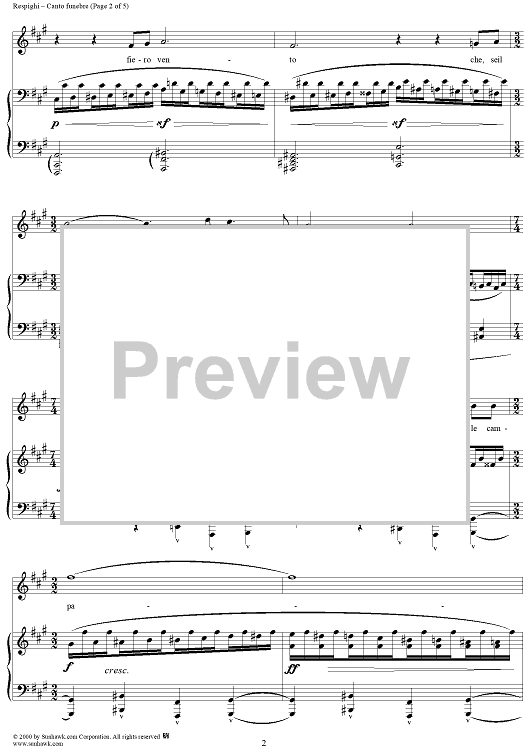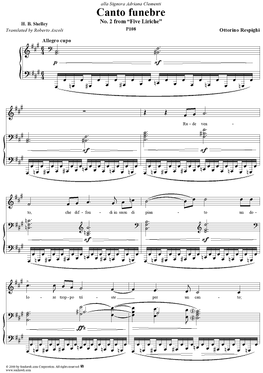 Digital Sheet Music for No. 2: Canto funebre by Ottorino Respighi, P. B. Shelley scored for Voice/Piano; id:255465