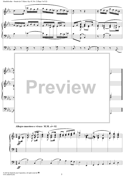Digital Sheet Music for No. 2 in C Minor by Felix Mendelssohn scored for Organ Solo; id:252063