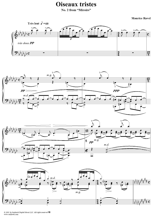 "No. 2: Oiseaux tristes" Sheet Music by Maurice Ravel