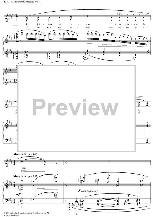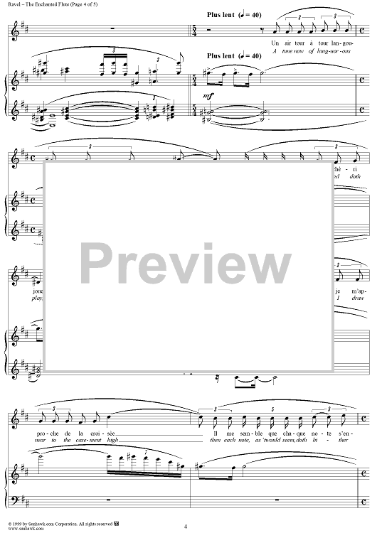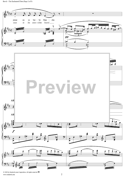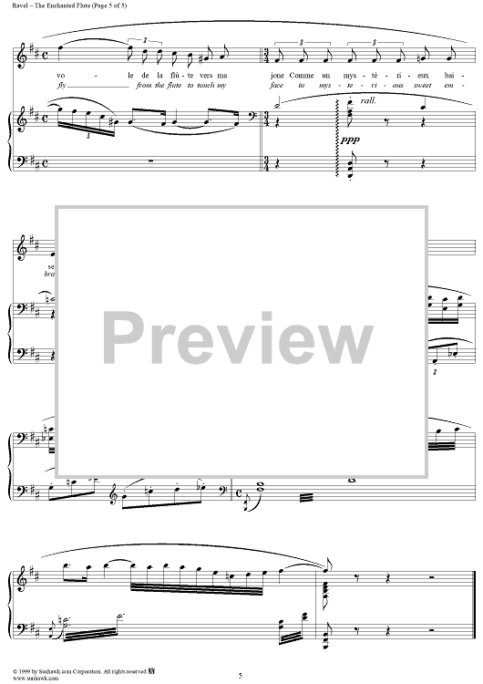 Digital Sheet Music for No. 2: The Enchanted Flute by Tristan Klingsor, Maurice Ravel scored for Voice/Piano; id:256276